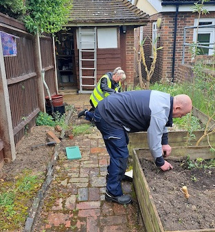 Three volunteers from local professional workwear company Johnsons came to spend the day volunteering with us twice in May 2025. They made huge inroads on weeding and tidying up the garden, getting our outside spaces ready for the tenants to enjoy the summer. Thank you so much to Johnsons for all of your hard work.